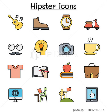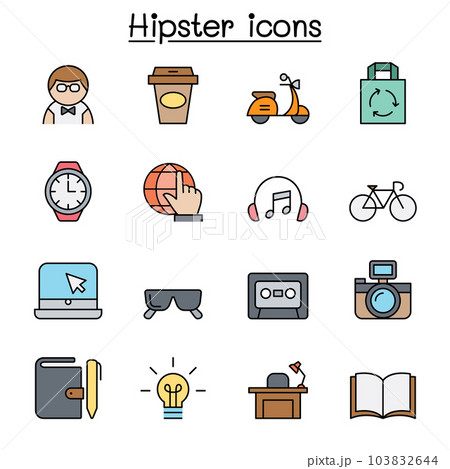 Hipster color line icon set