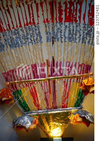 岐阜縣揖斐川町谷宮山華嚴寺新綠中的神簽掛與神簽相連