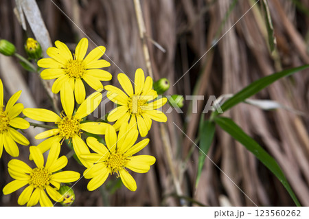 銀葉百合的黃色花朵在冬季盛開 [菊科,銀葉百合屬]