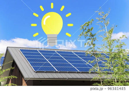 [發電圖像] 安裝了太陽能電池板和清澈藍天的住宅屋頂