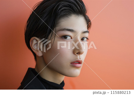 留著波波頭的亞洲女性的酷肖像(廣告、美容、時尚)