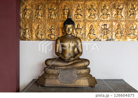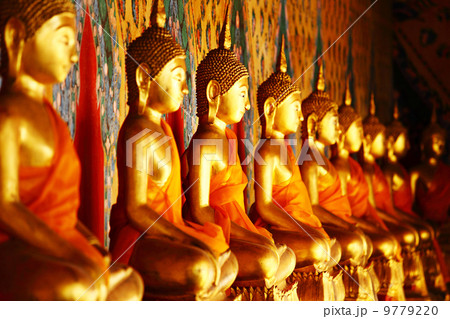 Statue of Three Monks Praying in Supplication in Gangaramaya Temple in Colombo Sri Lanka
