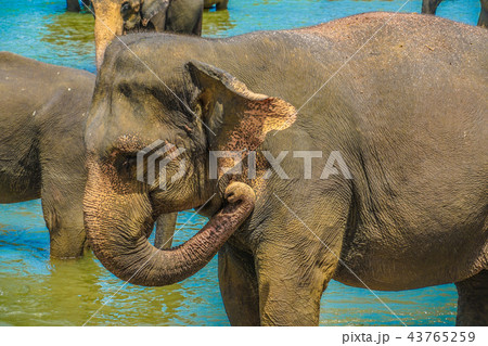 野生大象的圖像(Pinnawala,斯里蘭卡)