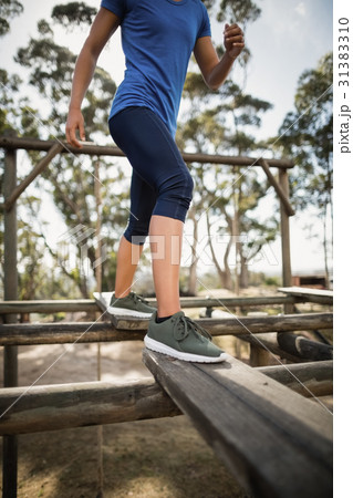 Fit woman practicing during obstacle course
