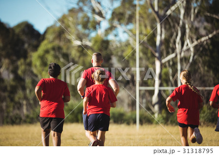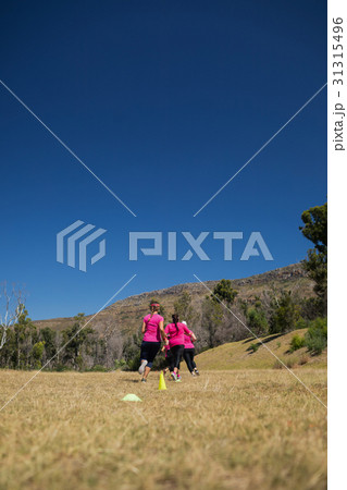 Group of women jogging together in the boot camp