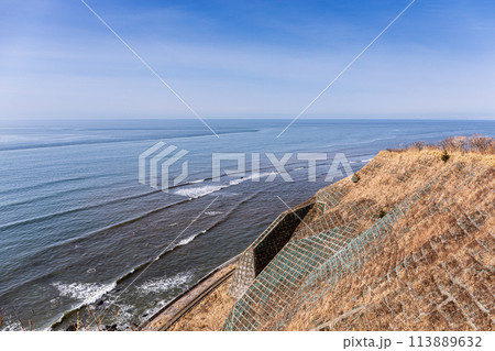從北海道新冠町阪眼岬展望台眺望的景色[3月]