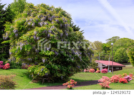 北海道新冠町函館森林公園盛開的大型紫藤樹 [5月]