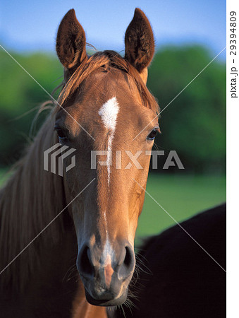 夏季藍天和賽馬(純種)生產牧場形象北海道