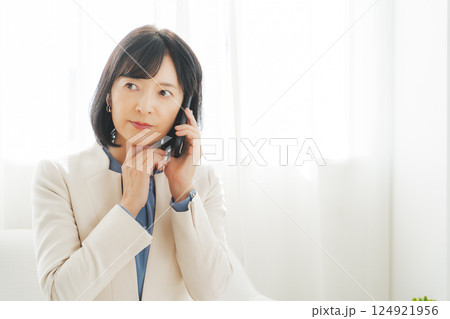 Professional Woman Working from Home Office with Laptop and Smartphone, Smiling and Engaged in Business Tasks