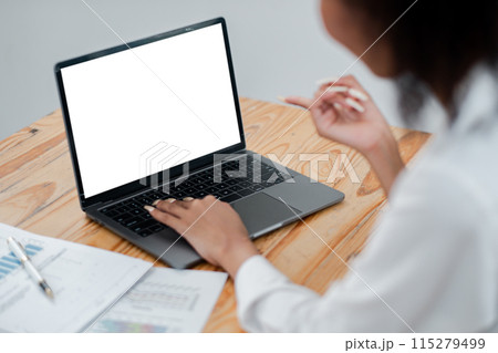 Close-up view of Asian businesswoman working online and planning financial calculation data working from home. Businesswoman and business planner concept