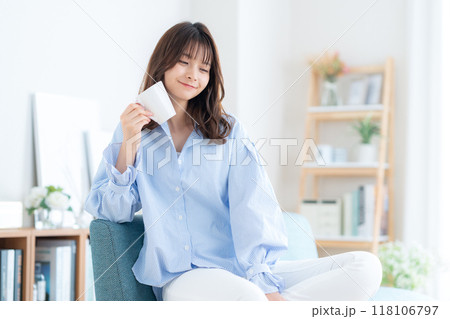 年輕女子在客廳放鬆