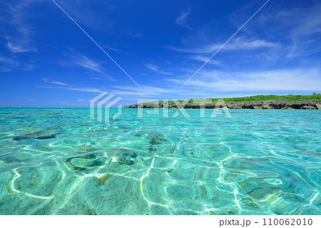沖繩縣新城島海岸的藍色大海和夏日天空