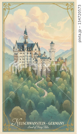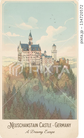 Illustration of beautiful view of Neuschwanstein Castle, Germany