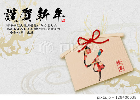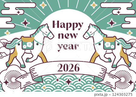 2026 年年新年賀卡 - 時尚馬剪影與山茶花 - 橫向