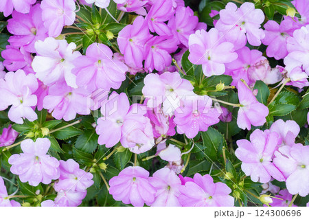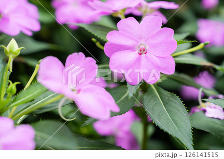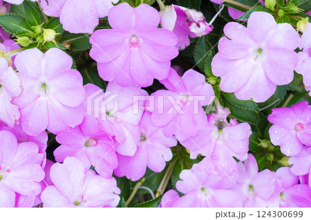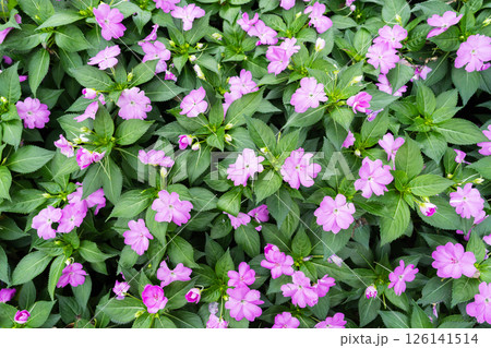 Impatiens new guinea in pink in full bloom.