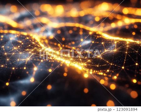 Glowing Network Landscape: Abstract Digital Connection Visualization