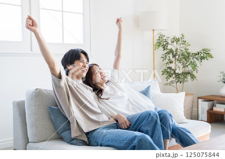 情侶們放鬆地看影片和電視