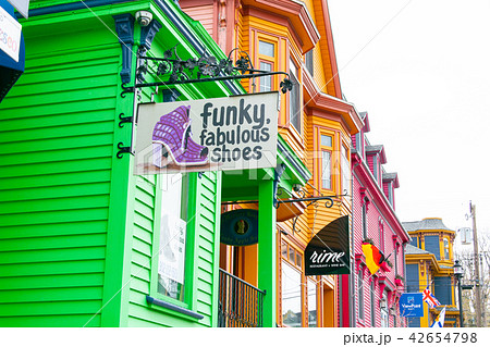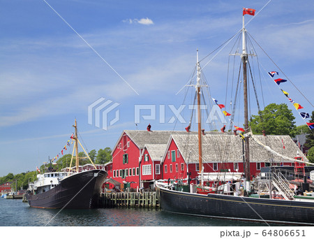 Panoramic view of UNESCO world heritage site of historic downtown Lunenburg and harbor at the Atlantic Ocean, Nova Scotia, Canada