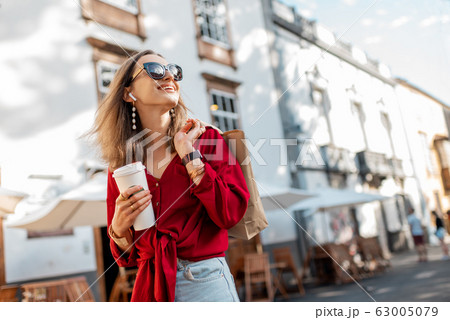 Woman traveling the old town in La Laguna city on Tenerife island, Spain