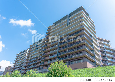 高層公寓大樓和清爽的藍天