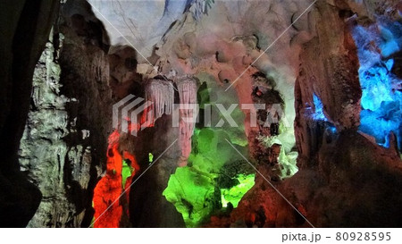 燈火通明的石灰岩洞穴-下龍灣“天宮洞”