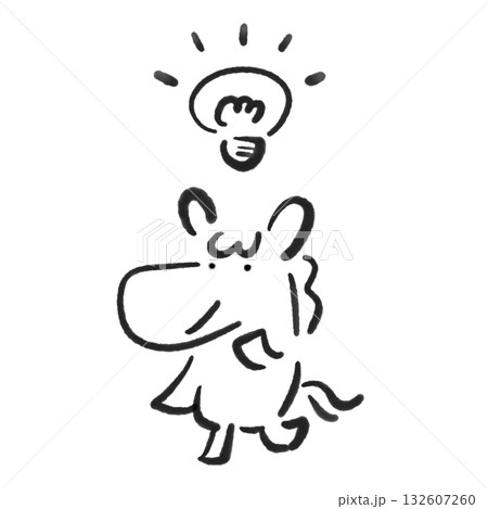 一匹馬,心中有念,一個燈泡,一個想法,水墨畫,單色