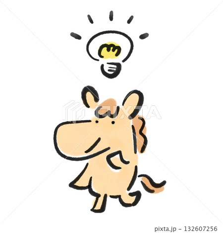 一匹馬,心中有念,一個燈泡,一個想法,水墨畫