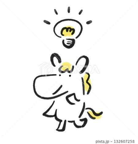 一匹白馬,帶著一個想法,一個燈泡,一個想法,水墨畫