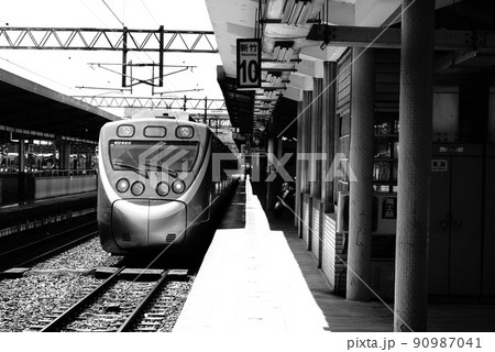 新竹車站月台黑白照