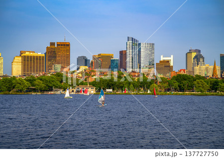 Boston Back Bay Skyline Across Charles River in Massachusetts, USA
