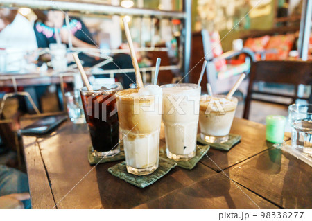 Delicious ice blended coconut coffee and americano black coffee in the cafe. Famous drink in Vietnam