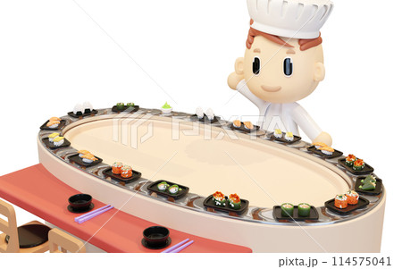 Japanese restaurant with sushi on conveyor belt isolated. 3d render illustration