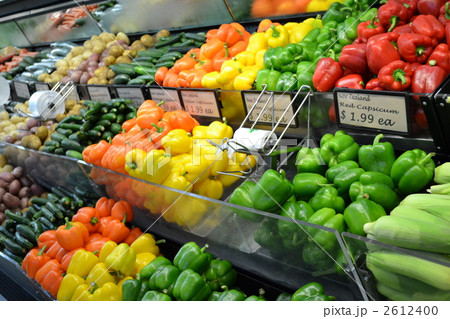 西紅柿和胡蘿蔔等色彩鮮豔的蔬菜。一位面帶微笑、提著籃子的女士。