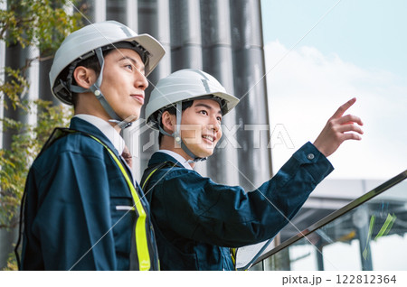 男總工程師講解施工進度、網路進度、施工監造、頭盔2人