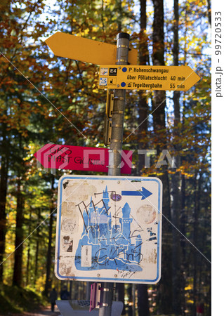 楓樹森林道路標誌新天堂石頭城堡堡壘國家楓樹森林道路標誌新天鵝堡德國