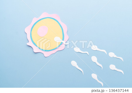 Sperm swim to ovum cell. The union of sperm and an egg cell. Fertilization process. Reproductive medicine health care pregnancy.