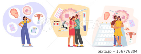 Set Couples Deep In Thought About Artificial Insemination, A Process Of Introducing Sperm Into A Woman's Uterus