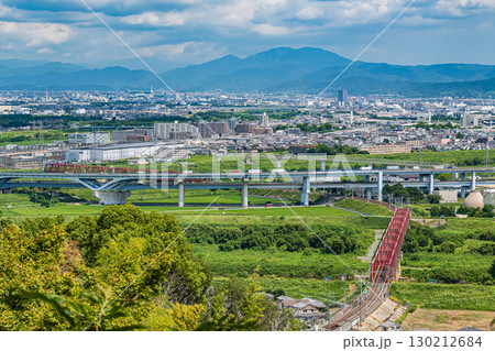 京都府八幡市京阪電鐵木津川鐵道橋京次迂迴路線男山展望台眺望的景色