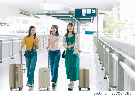 三位女性在機場準備出國旅行(攝影合作:關西國際機場(KIX))