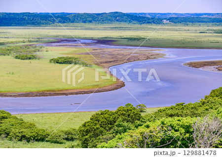 從藍天下的琵琶瀨展望台眺望霧多布沼