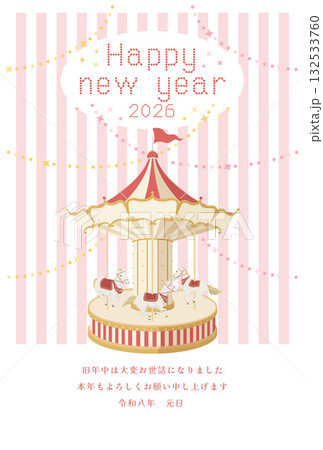 2026年少女旋轉木馬賀年卡素材(1:1尺寸)