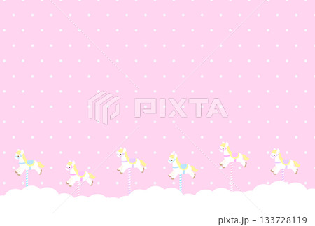 粉紅色背景,配有毛茸茸的絲帶搖搖馬,16:9 尺寸