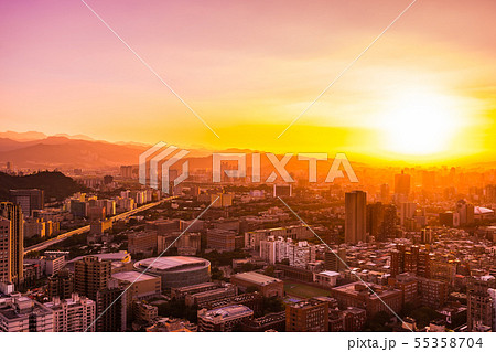Aerial view panoramic of kaohsiung city harbor at sunrise ,Taiwan.