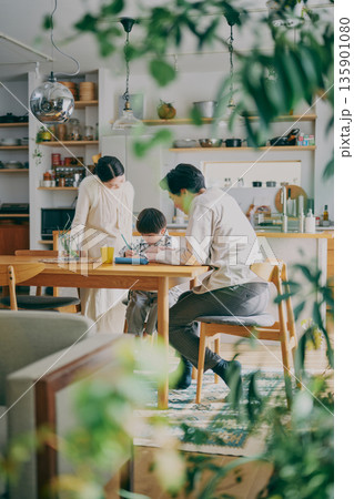一家人在餐廳放鬆