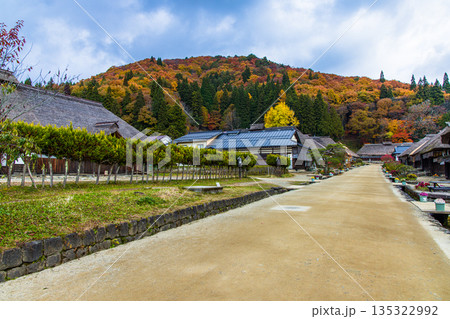 【福島縣南會津】深秋時節,驛站小鎮大內宿仍保留著茅草屋頂。十一月
