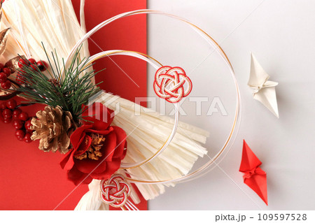 新年形象與時尚的注繩裝飾_紅色和白色背景