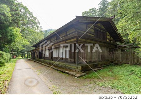 白雪皚皚的山脈和世界遺產白川鄉的城市景觀