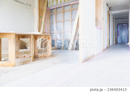 建築工地已經開始室內裝修工作。日式房間,客廳,走廊,門廳,公寓。