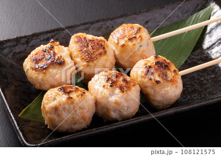 烤雞肉串,烤雞肉串,串和串的圖像。搭配紅酒和白菜一起食用。