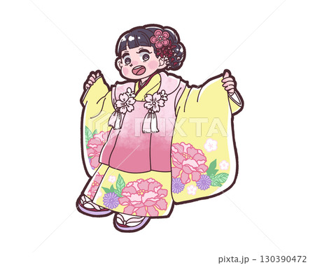 一個可愛的女孩穿著753 7歲慶典服裝的插圖